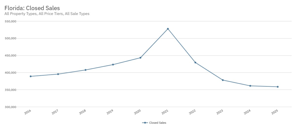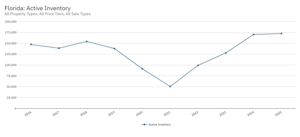 The 2025 Florida housing market represented a meaningful departure from the post-pandemic frenzy of ultra-low inventory, rapid price surges, and intense competition, transitioning instead toward greater balance and normalization as the year progressed.