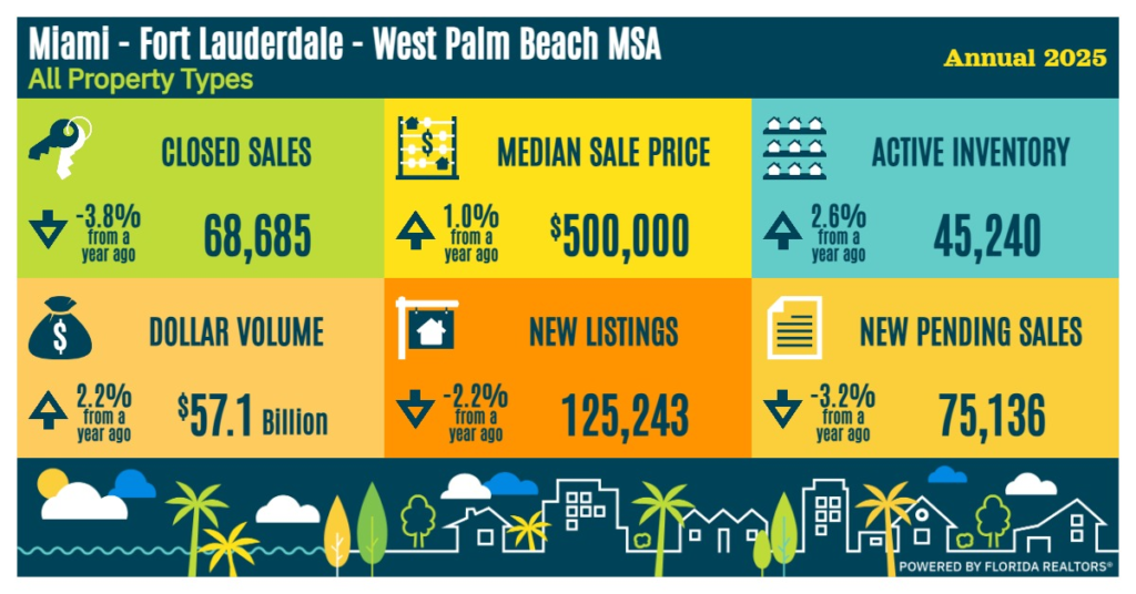 The South Florida housing market in 2025 (encompassing the tri-county region of Miami-Dade, Broward, and Palm Beach counties) showed clear signs of moderation and rebalancing compared to the post-pandemic frenzy.